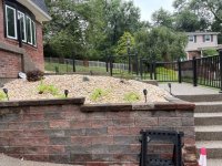 Removed existing grass. Installed weed block paper, flag stone pathway and new plants.